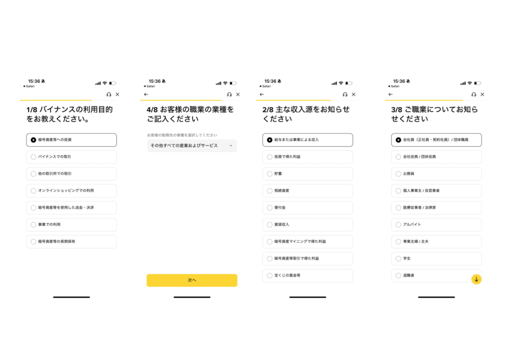 次に来るのはバイナンスジャパンの利用目的の質問となります。
