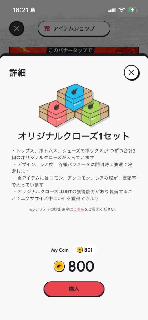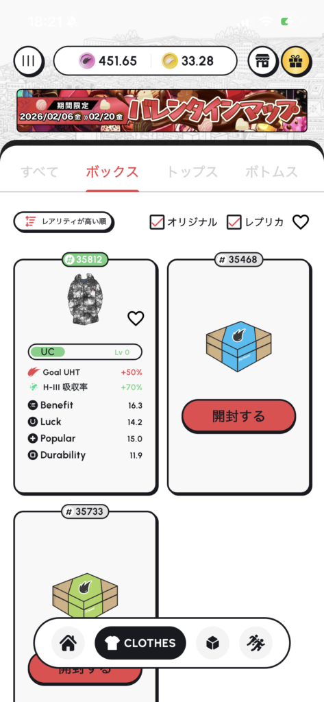 このヘルスリーコインの使い道はもちろんオリジナルクローズボックスの購入です。
