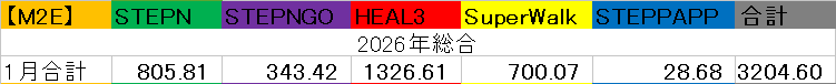 さて、2026年1月の歩いて稼ぐ総収益は3200円+1600円(MB報酬)とその他もろもろでした。