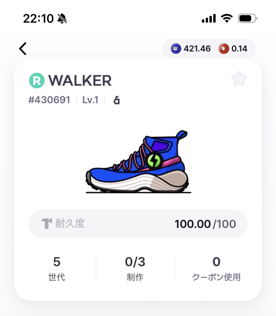 STEPNGOは今は5エナジーと少なく、GGTも下落していて1GGT=0.18円ぐらいなので全然稼げませんが、同時起動するだけですし、ミントしてスニーカーをバーン(燃やすとエナジーの上限が増える)するサイクルが回るので続けています。