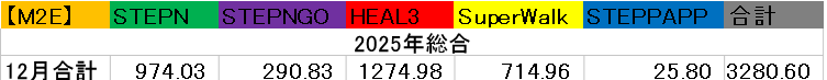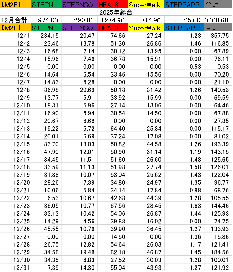 2025年も終わり、最終的にはSTEPN、STEPNGOが盛り上がっていなくて、ヘルスリー、SuperWalkが盛り上がっています。