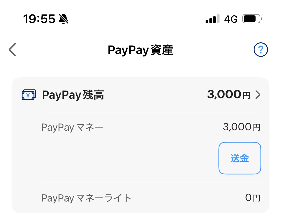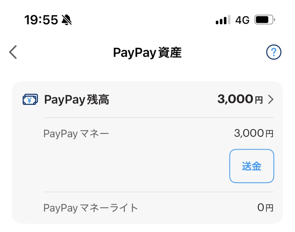 PayPay残高に入金したらバイナンスジャパンのアプリを開いて取引に行ってみるとPayPayに3000円分表示されました。