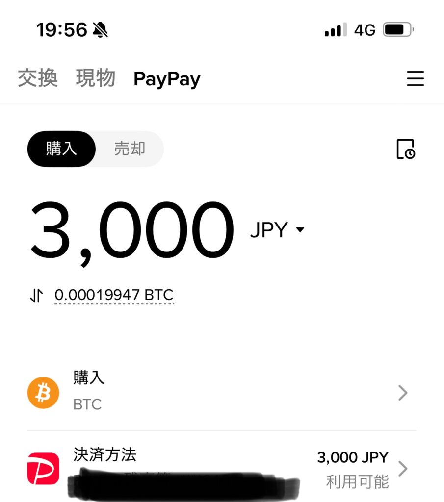 PayPayで暗号資産を買うには最低1000円からのようでした。